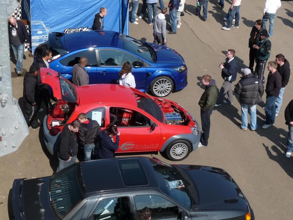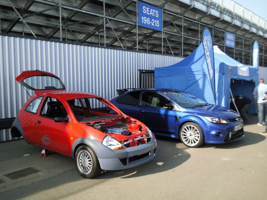 Arrived at Santa Pod about 0830 and off loaded car at Fastford stand. Placed it next to new Focus RS.
