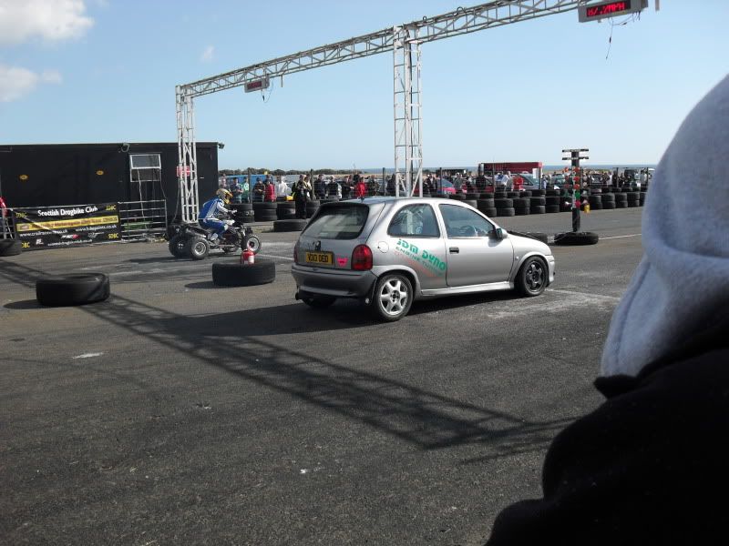 best time of day corsa got was a 12.4 @ 131.2mph with a 60ft time of 2.6 which is poor to the 60ft marker. very poor. that in gear boost not opperating was making it spin far far far far far far too much. must replace abs sensor with a working one for next time. oh and get gearbox casing fixed. all good fun.